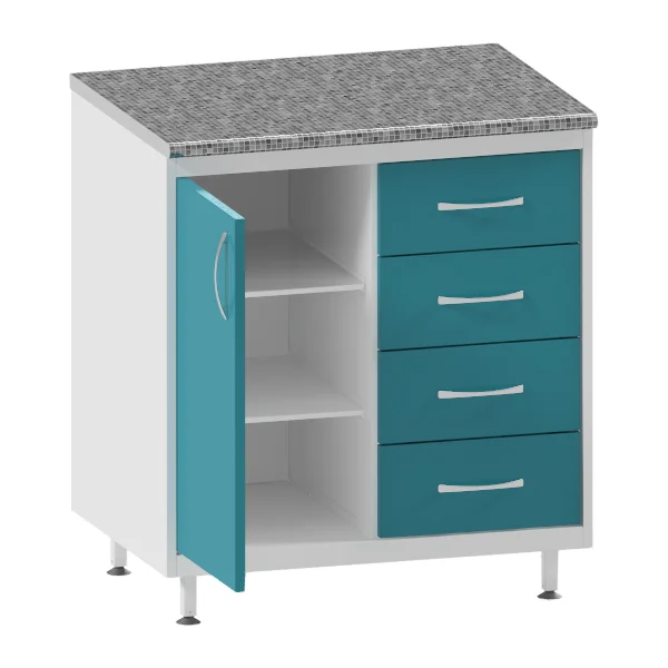 Металлические детали имеют защитно-декоративное покрытие эпоксидно-полиэфирной краской, нетоксичной, пожаробезопасной, устойчивой к ударам, сколам, средствам дезинфекционной обработки способом протирания. Цвет корпуса – белый, цвет фасадов по согласованию с заказчиком.